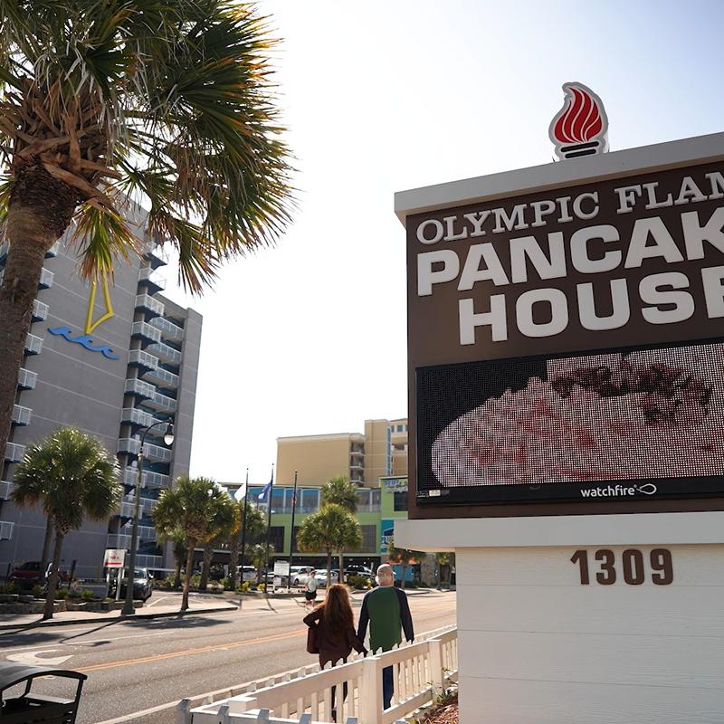 Are you tired of the continental “breakfast” hotels offer while on vacation? Or maybe fast-food chain’s processed meals have left you missing a good home cooked meal? Olympic Flame Pancake House of Myrtle Beach is the answer to your breakfast woes since 1975. From our fluffy buttermilk pancakes, delectable French toast, three egg omelets and more, Olympic Flame Pancake House has something for everyone.